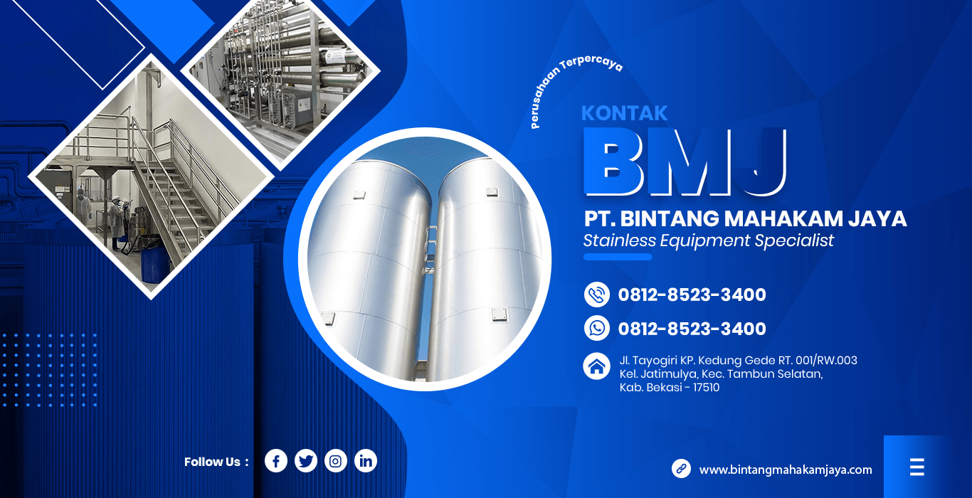 PT. Bintang Mahakam Jaya merupakan perusahaan yang bergerak di bidang pembuatan berbagai peralatan industri, kami spesialis dalam permesinan dan fabrikasi tangki baja & stainless steel. Perusahaan kami ini berbasis di Bekasi sebagai Stainless Equipment Specialist khususnya fabrikasi untuk tangki, bagian bejana tekan, adaptor, elemen agitator bagian mekanis, bagian tahan karat untuk bejana atau tangki dan penyangga baja tahan karat.